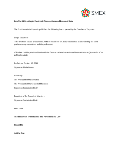 Official Gazette-Law No. 81 Relating to Electronic Transactions and Personal Data