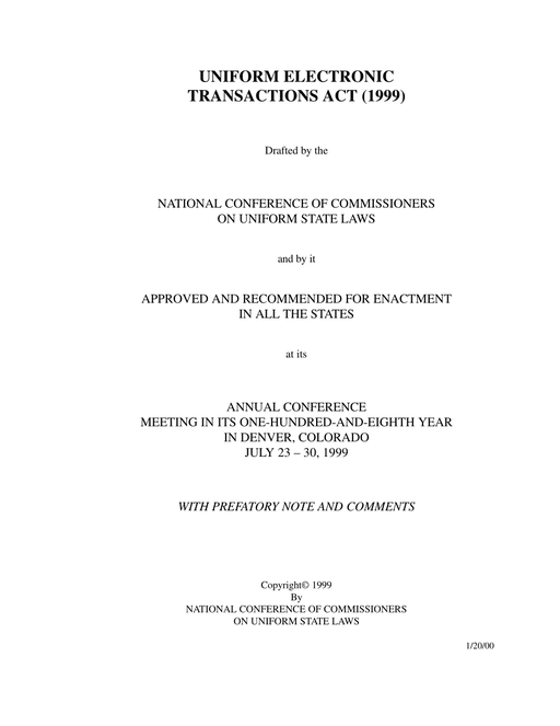 Uniform Electronic Transactions Act 1999; ELECTRONIC SIGNATURES IN GLOBAL AND NATIONAL COMMERCE ACT